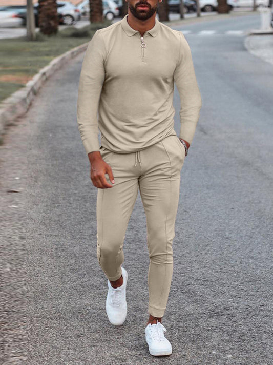 Men's Textured Casual Half Zipper Stand Collar Suits