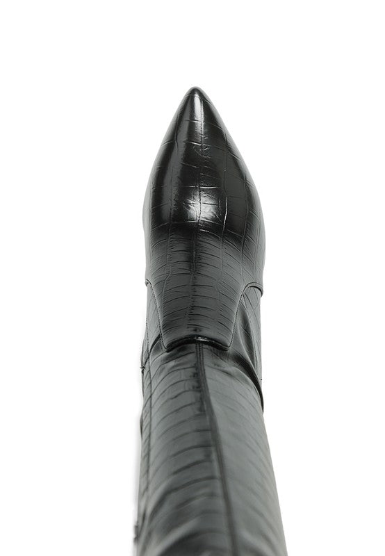 Pair of beautiful block-heeled boots in faux suede. The knee-high boot has a zipper opening and comes in sturdy heels. Be all ready for winter with in the pointed toe boot in suede - keeps warm!