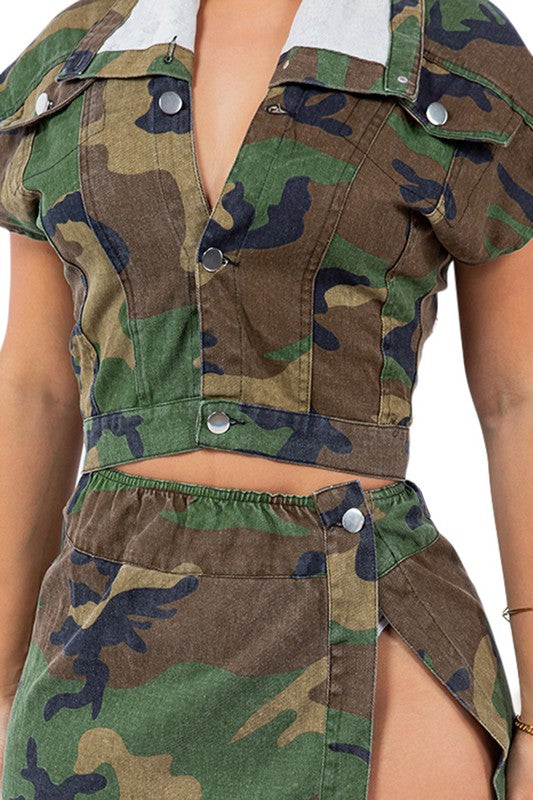 Sexy denim jacket with short sleeves, wrap skirt with bottoms
